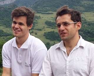 Самый молодой чемпион мира по шахматам 23-летний норвежец Магнус Карлсен и второй в рейтинге гроссмейстеров, 32-летний обладатель Кубка мира Левон Аронян встретились в прошлые выходные в Ереване на мероприятии Сергея Белоусова и Рубена Варданяна Acronis Armenia – не совсем понятно зачем. Карлсен и Аронян играли в шахматы с детьми в Ереванском шахматном клубе, сыграли с местными чиновниками (Магнус дважды произвел фурор, предложив ничью школьнице и из-за технической ошибки проиграв блиц депутату), встречались с предстоятелем армянской церкви, путешествовали и просто приятно проводили время.
