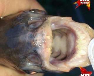 Через минут двадцать поклевка. Подсекаю и вижу в толще воды красное брюхо. Думал, что карась в крови. Выводя на берег, в траве срывается. Я - за ним. Выкидываю на берег (здесь фрагмент предложения мы удаляем из соображения цензуры – прим. ред.). Что за монстр? Туловище плоское, пузо к голове красное, чешуя серебристая, нижняя челюсть выпертая, зубы - как у человека.