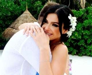 Для 29-летней певицы Лены Темниковой 2014 год стал судьбоносным:девушка покинула группу SEREBRO, где была солисткой с самого создания коллектива, и решилась связать себя брачными узами с любимым человеком по имени Дмитрий. Избранник Лены занимается бизнесом в сфере IT-технологий. Местом проведения церемонии пара выбрала одну из самых романтических точек мира — Мальдивские острова. Там под звуки морского прибоя влюбленные и обменялись кольцами в присутствии услужливых официантов, фотографа и повара, который приготовил для супругов скромный белоснежный торт. Позвать на церемонию друзей и близких Лена и Дмитрий просто напросто не успели, ведь решение зарегистрировать свои отношения они приняли спонтанно и уже через 15 минут после этого, упаковав чемоданы, спешили на самолет. Свадьбу сыграли несколько месяцев назад и по сей день влюбленные держали это в строжайшей тайне. Дабы гармонично смотреться на фоне белоснежного песка и лазурного моря, невеста выбрала платье насыщенного голубого цвета с длинным шлейфом, а свадебную фату Лене заменило изящное украшение, выполненное из нежных белых цветов.