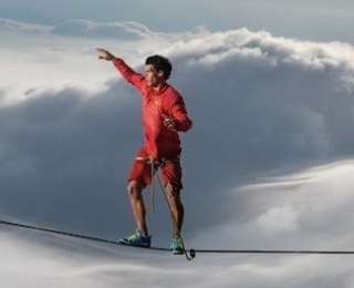 7. Стремительный шторм поглощает скалу Педра-да-Гавеа, и кажется, будто Кайо Афето идет по облакам.