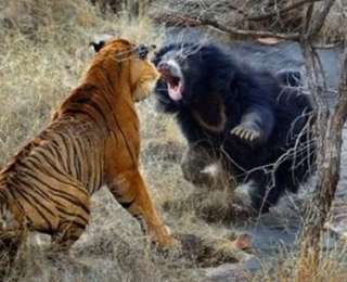 Любая мать порвет за своих детей, тигр зря полез на медведицу, которая выгуливала своих медвежат. Ну, вроде все обошлось, никто не пострадал, тигр во время унес ноги.