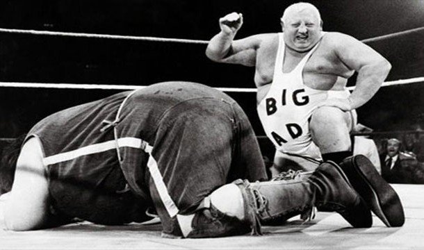 Британский профессиональный рестлер Мэл «Кинг-Конг» Кирк (Mal “King Kong” Kirk) был раздавлен насмерть животом Ширли «Big Daddy» Крэбтри (Shirley “Big Daddy” Crabtree), когда Крэбтри исполнил свой легендарный «удар животом».