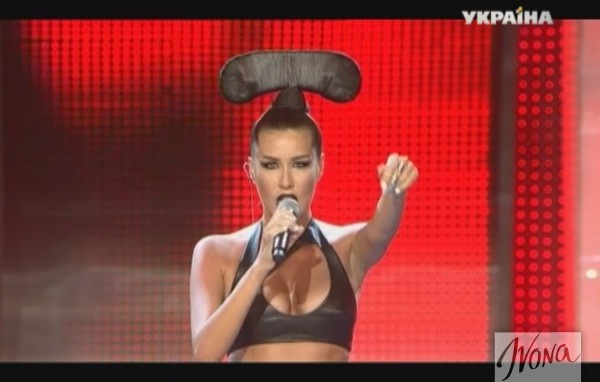 Кети Топурия также была в числе артистов, выступивших в этот вечер в Юрмале. Молодая артистка выбрала весьма экстравагантный наряд. На ней был кожаный лиф и длинная юбка в пол черного цвета. Прическу Кети российский комик Максим Галкин, ведущий вечера, назвал "хвостом кита".