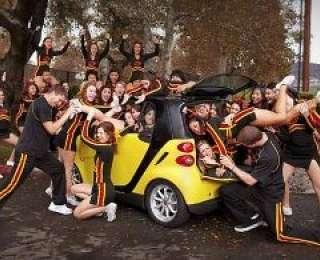 Парад сомнительных достижений открывает удивительное событие 2011 года, когда в малолитражку Smart ForTwo (длиной 2695, шириной 1559 и высотой 1565 миллиметров) поместились 20 девушек из команды поддержки американского колледжа. Успешная попытка не запечатлена на видео (есть только фото), но можно посмотреть ролик с предыдущим рекордом – как раз его и побили чирлидерши. Он был установлен в 2010 году австралийскими скалолазами.