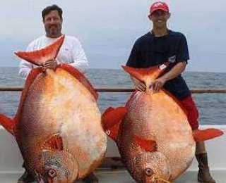 Опах, также известный как рыба-луна, является редким видом и рыбакам крайне редко удается похвастаться подобным трофеем. Впрочем, целенаправленно эту рыбу не ловят, как правило, это происходит случайно. Вот и в этот раз, искавшая в течение недели тунца группа рыбаков, вытащила из воды трех опахов за один день.