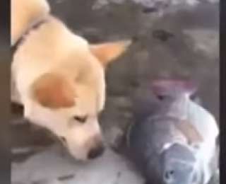 На ролике видно, как собака, обнаружив задыхающуюся на асфальте рыбу, пытается дать ей воды. Окуная морду в находящиеся рядом лужи, пес пробует "обрызгать" рыбу.