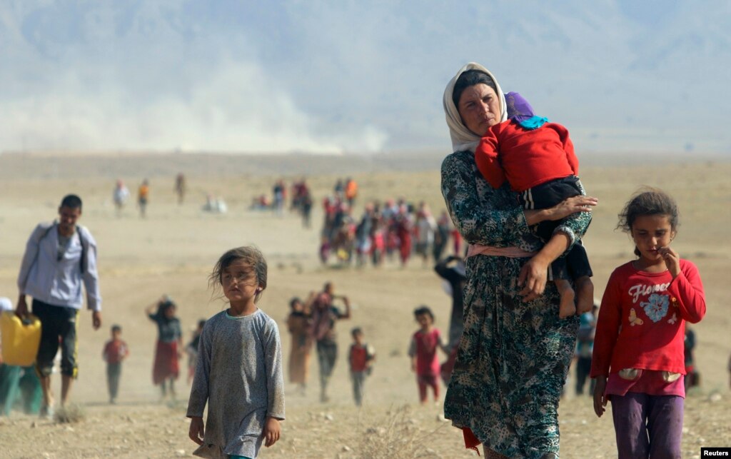 В Ираке езидская община насчитывает примерно 1 млн человек. Большая часть из них проживает в провинции Шангал на севере Ирака, на которую и напали исламисты. Около полумиллиона езидов, преследуемые боевиками группировки «Исламского государства Ирака и Леванта» (ИГИЛ), заявившими, что они либо примут ислам, либо будут убиты, стали беженцами, ища приюта в соседних странах. Около 100 тыс. человек спасаются от преследований на расположенной в провинции Шангал горе Синджар, где попросту умирают от голода.