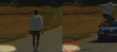 Вот только многочисленные скептики полагают, что ролик просто мастерски смонтирован. Эксперты, в частности, обращают внимание пользователей на некоторые визуальные нестыковки. Такие, как, например, подозрительное светлое пятно на асфальте, которое потом словно забыли "затереть".