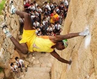 Несколько лет назад молодой Джоти Радж был очень депрессивным человеком. Он выбрал скалу, и решил залезть на неё, чтобы затем спрыгнуть. Огромная скала стала для него дилеммой, потому что не было лёгкого пути, позволяющего оказаться на вершине. Но Раджу всё же удалось подняться туда, подражая обезьянам вокруг. И когда он оказался на вершине, наградой ему стали аплодисменты прохожих, увидевших его подъём. Он больше не хотел умирать. Вместо этого он стал самым известным в Индии «альпинистом-обезьяной».