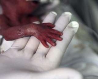 3. Медсестра держит за руку недоношенного ребенка, который родился на 5 месяце беременности, в больнице в Медельин, Колумбия. (© REUTERS / Fredy Builes)