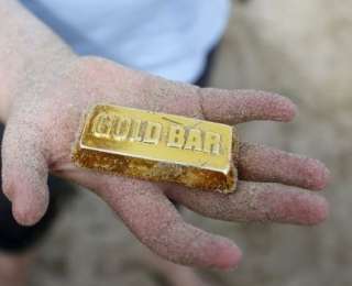 И наконец один из золотых слитков был найден. Находка оказалась вполне увесистой