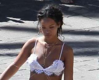 Рианна и ее свита передвигаются на роскошной 56-метровой яхте Galaxy, построенной в 2005 году, стоимость аренды которой начинается с впечатляющей суммы в 255 000 евро. Последней на данный момент остановкой стал город Кальви на острове Корсика, по улицам которого Рианна прогуливалась в белом кружевном бюстгальтере Isabel Marant за 245 евро и белой юбке этой же марки из весенне-летней коллекции 2014 года (цена — 467 евро). На ногах у певицы были босоножки Alexander Wang. Образ звезды довершали кольца и браслеты Jacquie Aiche.
