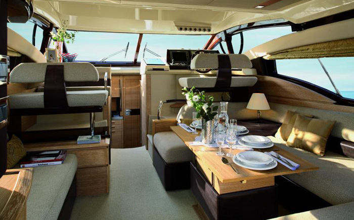 Конструкция специально разработана, чтобы владелец получил достойный уровень комфорта и роскоши. На катере есть два поста управления, которые могут дублироваться. Катер длиной 12,8 м может разместить в каюте 6 человек. Также на борту в трюме есть бар и холодильник, 2 каюты-люкс, телевизор с плоским экраном и отделение, где хранится вино и другие напитки. Безусловно, 640 000 долларов - это большая сумма, но катер оснащен мотором HP Cummins QSB engine мощностью 280 кВт. Деньги не на ветер!