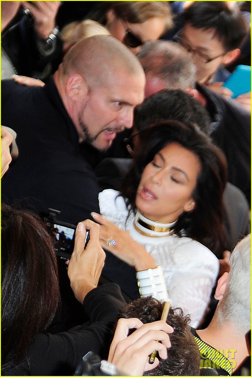 После показа Balmain в Париже на Ким Кардашьян напали. Канье и Ким с мамой выходили из машины, как вдруг, кто-то схватил Ким за ногу и попытался повалить на землю.