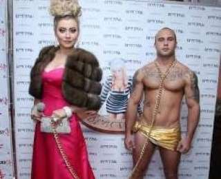 Но еще более шокирующим был обнаженный мускулистый татуированный мужчина в роли раба с набедренной повязкой и с длинной цепью на шее, конец которой Ленина держала в руке. Видимо, эпатажная владелица Сети Студий Маникюра Лены Лениной позабыла о том, что крепостное право на Руси давно отменено. А может быть, это новая мода миллионеров?