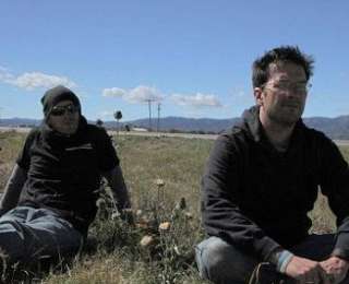Тод (слева) и Джастин (справа) на фоне башней дьявола в Вайоминге