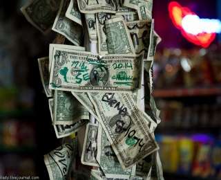 Но сейчас я хочу рассказать вам о баре, в котором мы имели честь пообедать. Обычный себе американский бар, ничем внешне не отличающийся от остальных. Забрели мы в него совершенно случайно, так как по дороге попался только он. Зашли и не пожалели. Вы только посмотрите, какая там внутри красота!!! Сколько денег!!!” – рассказывает Майя Бурякина