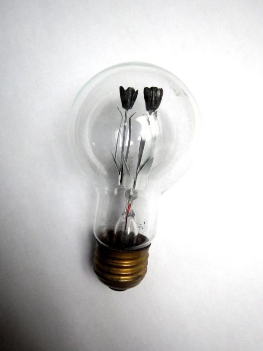 Вооружившись паяльником, можно сделать необыкновенно красивый "аленький цветочек" внутри старой перегоревшей лампочки.