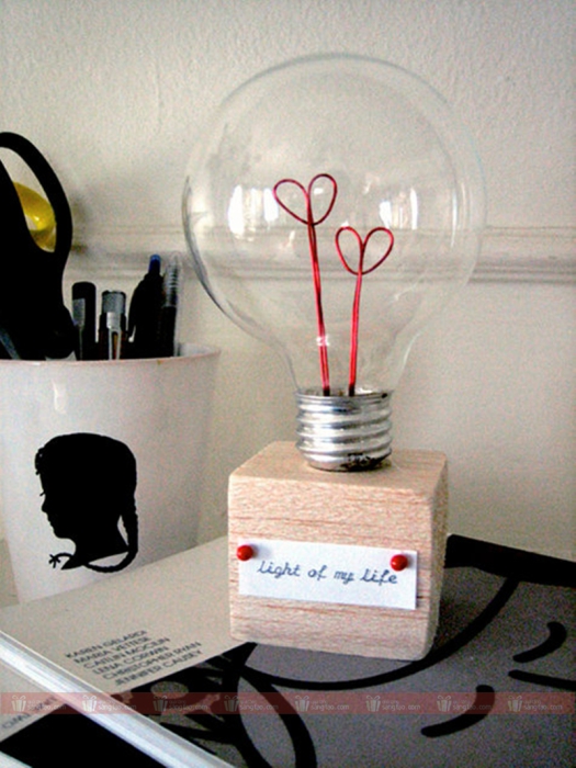 В случае, если праздник влюбленных уже на носу, но подарок второй половинке все еще не куплен, его можно создать из подручных средств. У любого человека в доме найдется старая перегоревшая лампочка и кусочек красной проволоки. Нужно всего лишь проявить фантазию и приложить немного усилий.