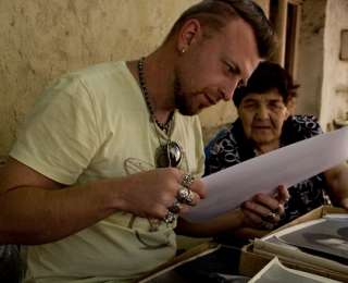 9. Кнарик (это «лира» по-армянски) несет старые фото мужа и свои. Кнарик в молодости глядит на нас у памятников ВДНХ.