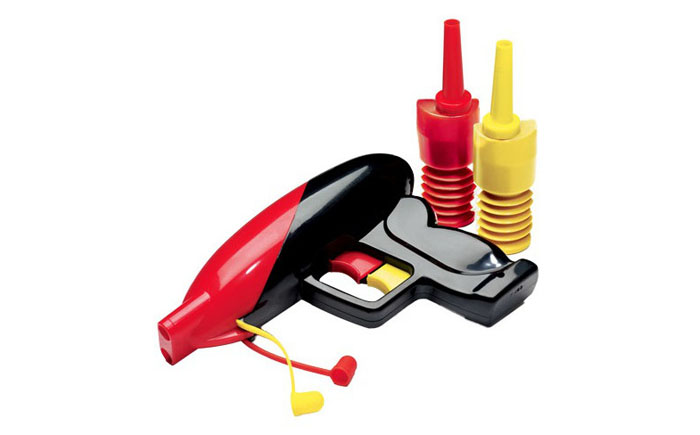 Оригинальное двуствольное оружие, которое стреляет любимыми соусами. Можно нажать красный курок, можно жёлтый, а можно и два сразу – выстрел получится мощнее.