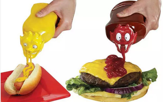 Если в небольших, по-домашнему уютных, ресторанах и кафе обратить внимание на столовые приборы, стоящие на столах, то можно заметить оригинальные наборы. Иногда они поражают и даже ввергают в ступор, а иногда вызывают умиление. Предлагаем обзор оригинальных наборов для кетчупов и горчицы.