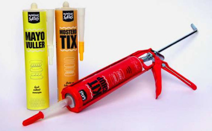 Оригинальный набор для строителя. Вот только вместо монтажной пены будет кетчуп и горчица.