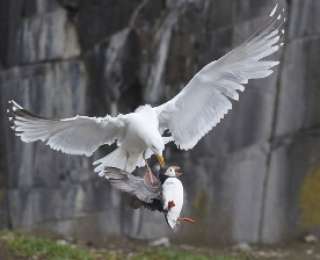 21. Победитель в категории Поведение животных: Серебристая чайка подняла тупика от земли. Нортумберленд, Англия. Фото: Аманда Хайс