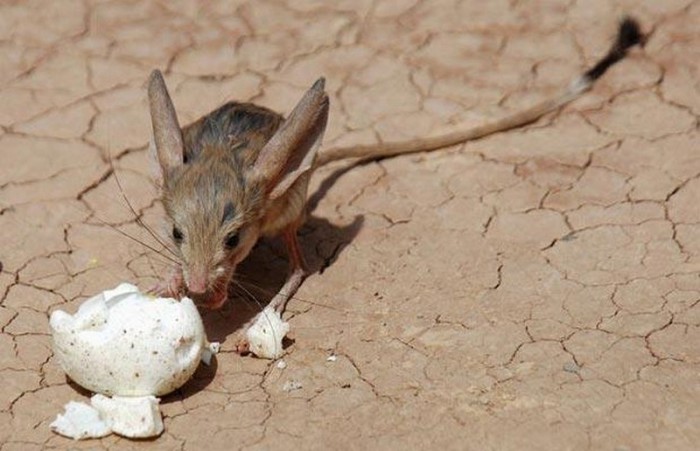 Этот грызун проживает в пустынях Китая и Монголии. У него очень длинный хвост, уши и задние лапы.