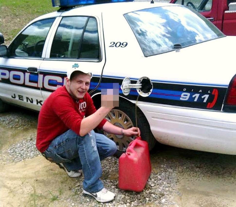 Майкл Бейкер посчитал, что это будет забавно, если он перекачает бензин из полицейской машины и сфотографируется во время этого занятия. Его фото с неприличным жестом показалось Майклу и его подруге идеально подходящим для его аккаунта в Facebook. Полицейские не оценили юмора молодых людей и арестовали Майкла вскоре после того, как он выложил в сеть это фото.