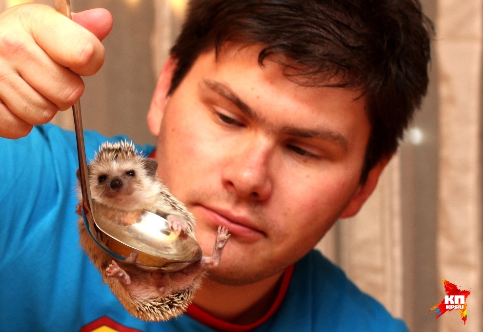 Хозяину Александру – 22 года, Мирре – 8 месяцев. Сейчас эта «плюшка» (так ласково питомца называет парень) весит килограмма четыре, (взрослый енот вырастает до 20). Откуда-то появляется тазик с водой, в него погружаются игрушки, и енот стремительно несется… Чтобы поплескаться. Теперь название «енот-полоскун» становится очевидным: полоскать еду, вещи и все, что попадет под руку, у этого зверя в крови. А еще еноту нужно круглосуточное внимание. Как только про него забывают, он начинает пакостить. Например, на голову забирается или, затаив обиду, в углу обои отрывает. Впрочем, и любовь дарит от всей своей енотовой души: приветствует, хватаясь за нос, и тычется в губы. «Кому стоит заводить такую экзотику? Никому, – рассуждает хозяин енотихи и немногим погодя добавляет. – Но я не пожалел ни разу» (подробности).