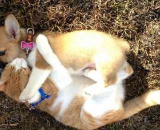 Буквально несколькими своими фотографиями эти четвероногие друзья разрушили известную поговорку: "Как кошка с собакой", потому как просто не могут жить друг без друга. Представляем вашему вниманию двух лучших друзей, рыжую кошку Манго и собаку породы корги по кличке Люси. В их дружбе существует один очень очаровательный момент - эти ребята очень любят обниматься. Обнимашки пушистых друзей, которые сделают ваш день максимально позитивным, ждут вас далее.