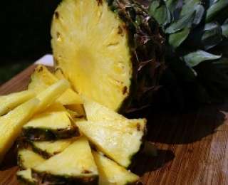 Ананасы. Плод содержит витамины А, B1, B2, С, а также микроэлементы — железо, калий, кальций, магний, натрий, фосфор.