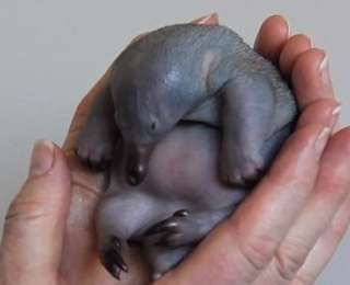 Детеныш ехидны, которому месяц от роду, выпал на пешеходную дорожку из маминой сумки. На его счастье малыша подобрал прохожий и отнес в зоопарк Сиднея. Там его кормят молоком из пипетки и через несколько месяцев детеныш превратится в настоящую ехидну.