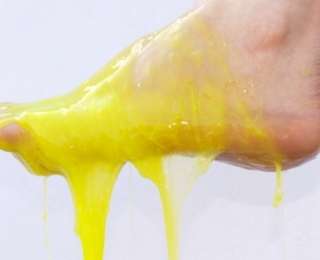 В Японии появилась новая технология создания идеально подходящей по размеру обуви. Удивительные тапочки принимают форму стопы и, соответственно, не жмут, не натирают и выглядят ярко и необычно. Сделать такую пару обуви так же просто, как обмакнуть лакомый кусочек в сырное фондю, и для этого нужно всего лишь опустить ступни... в поливинилхлорид.