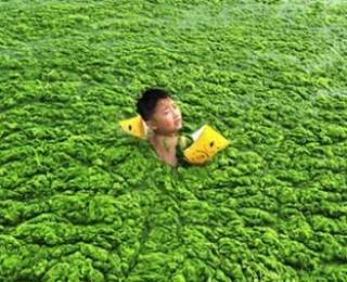 К сожалению, половина озёр и рек Китая загрязнены разными странными вещами. Но ведь латук это же не плохо. Это всё равно, что плавать в салате!