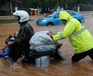 В результате сильных сезонных дождей были затоплены многие улицы Джакарты, что практически парализовало дорожное движение. Эти фотографии были сделаны 9 и 10 февраля 2015 года на разных улицах столицы Индонезии.