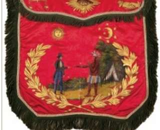 Во время своих собраний масоны носили фартуки, которые обозначали их степень. На этих шелковых фартуках был изображен американский индеец, предлагавший белому человеку трубку мира.Недавно затейливые наряды вырождающихся тайных обществ попали в поле зрения Голливуда, поп-звезд и дизайнеров интерьеров. В 2004 году в фильме «Сокровище нации» утверждалось, что Отцы-основатели – многие из которых на самом деле были масонами – нашпиговали банкноты и документы, такие как Декларация независимости, подсказками о месте нахождения невероятного сокровища.