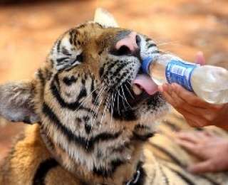 Для посетителей Храма Тигров в Таиланде есть несколько программ разной стоимости, которые предусматривают кормление и тисканье детенышей тигрят, купание и кормление подростков тигров, игры у пруда со взрослыми кошками.