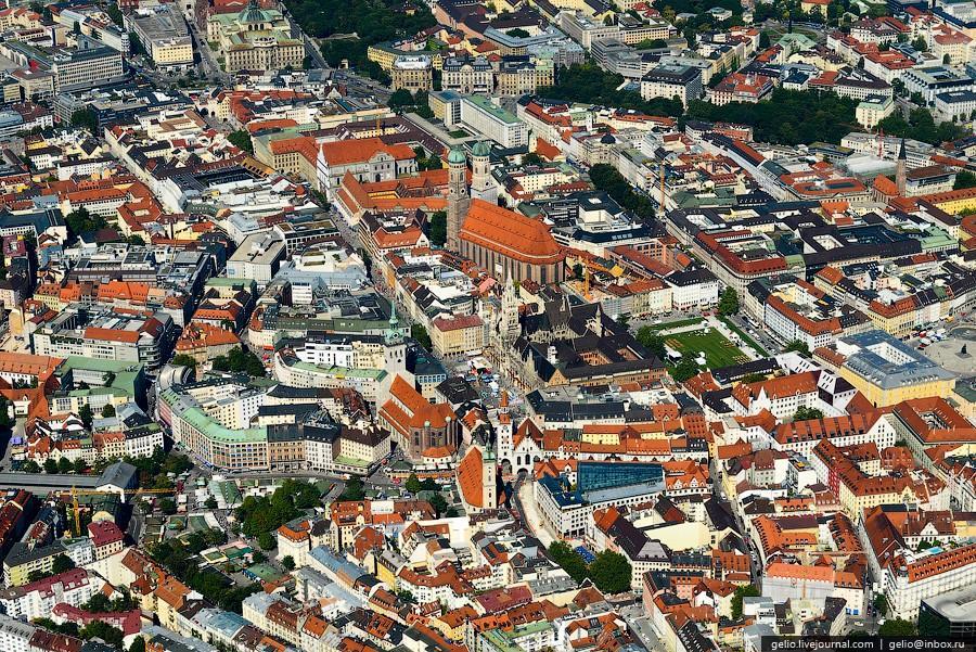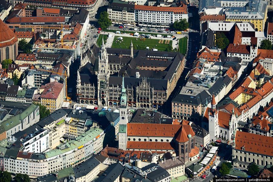 2. Центральная площадь города — Мариенплац (Marienplatz), в районе которой расположены многие достопримечательности, в том числе старая и новая ратуша.