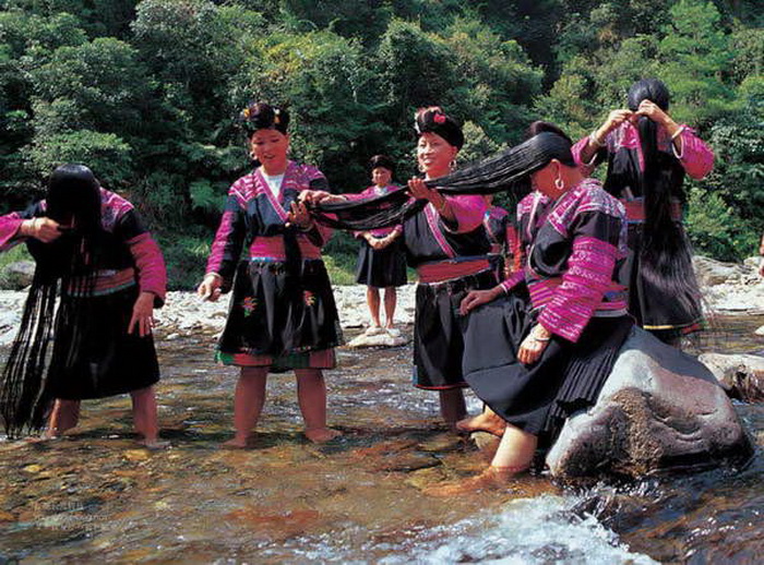 Куда более гуманные традиции у представительниц народности яо. Длинноволосые девушки из китайской деревни Хуанло славятся тем, что их косы могут достигать двух метров, ведь обрезают они волосы лишь раз в жизни в 16 лет, проходя своеобразный обряд инициации. На протяжении десятилетий считалось, что роскошную копну волос видеть мог лишь муж китаянки в день свадьбы. Если же чужому мужчине случайно доводилось увидеть волосы, выбившиеся из-под платка, ему нужно было прожить с женщиной три года в браке.