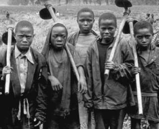 Гиссенджи, Руанда. Восточная Африка — территория нескончаемых войн. Эти дети осиротели, и вынуждены сами вскапывать землю мотыгами, чтобы выращивать себе еду.