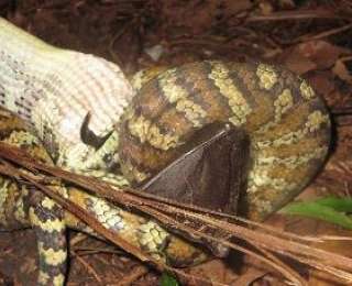 Фотограф Луис Кин во время своей экскурсии по национальному парку Говард Спрингс, Австралия, застал голодного питона, поймавшего крупную летучую лисицу. Несмотря на то, что длина питона составляла 1,5 метров, а размах крыльев крылана достигает не меньшей величины, змея с легкостью проглотила млекопитающее целиком.