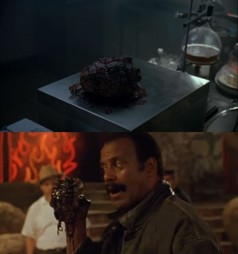 Помните фигурку оскаленного золотого божка, за которым охотился главный герой фильма «Индиана Джонс: В поисках утраченного ковчега»? Идол, разумеется, был слишком хорош, чтобы держать его на полке, поэтому пару десятилетий спустя он всплыл в мелодраме «Мажестик» (во вставном сюжете ленты фигурирует кинопародия на «Индиану Джонса» под названием «Песчаные пираты Сахары», где удостоился «камео» тот же божок, хотя дело происходит уже не в Южной Америке, а в египетской гробнице). Позже фильмография божка пополнилась сериалом «Звездный путь. Глубокий космос девять» и экшеном «Дети шпионов — 2».