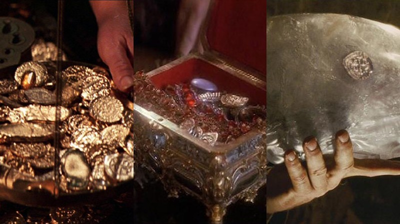 Вы обращали внимание на старинные золотые монеты, словно бы путешествующие из фильма в фильм? «Балбесы», «Капитан Крюк», «Индиана Джонс и Королевство хрустального черепа» — далеко не полный список картин, где их можно увидеть. Все верно: одна и та же груда бутафорских драгоценностей эксплуатируется Голливудом уже не первое десятилетие. И, в общем-то, удивляться нечему, ведь в реальной жизни деньги тоже постоянно переходят из рук в руки. Голливудские бутафорские монеты — тот самый случай, когда слова «сэкономить деньги» используются в самом что ни на есть буквальном смысле.