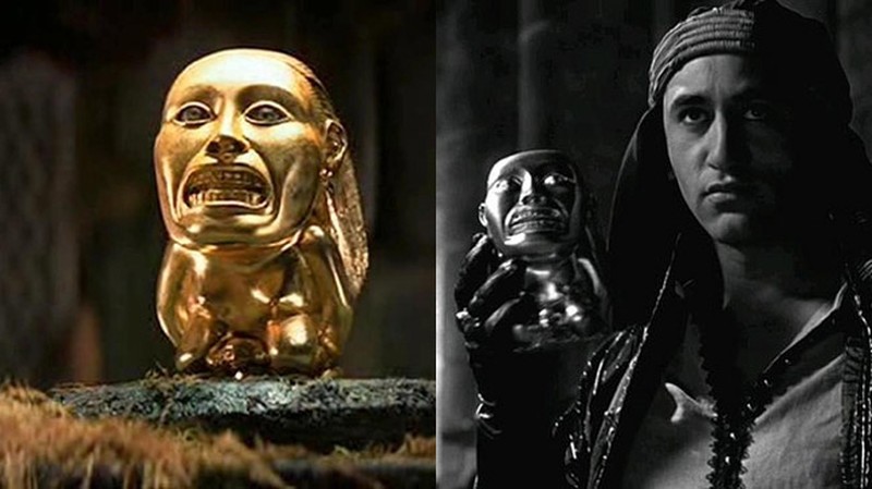 Судя по всему, идол, фигурирующий в фильме Стивена Спилберга, срисован с ацтекской богини Тласолтеотль (существует похожая статуэтка богини с вылезающим между ее ног ребенком, хотя специалисты и считают, что это подделка, относящаяся к XIX веку). Купить себе такого золоченого божка сегодня может каждый, поскольку производители мерчандайза наштамповали их огромное множество. Так что если знакомые фигурки будут и дальше всплывать в чьих-нибудь фильмах, лично мы ничуть не удивимся.