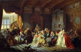 4. Обряженным вельми, но без лишнего перебору, окромя дам прелестных. Последним дозволяется умеренно косметикою образ свой обольстительно украсить. Особливо грацией, веселием и добротой от грубых кавалеров отличительными быть.