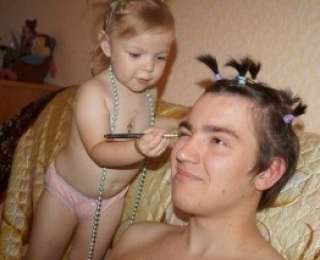 На что только ни готовы любящие папы ради своих принцесс! Даже ходить с розовыми бантиками и заколочками на густой бороде.