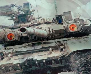 Танк Т-90 смотрится очень грозно, особенно с инфракрасными фарами. Прямо-таки монстр с красными глазами.
