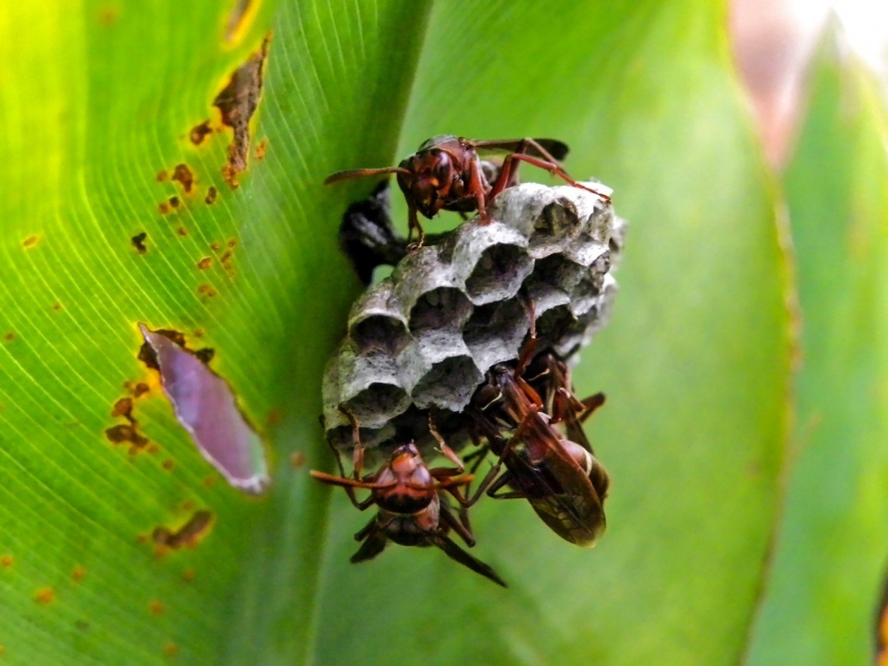 Эти осы будут защищать свое гнездо с максимальной агрессией. Несмотря на очевидные неудобства, которые представляет соседство с этими насекомыми, оса довольно полезна, поскольку питается другими насекомыми-вредителями. Шмидт описывает ощущение от укуса осы, как чувство, когда о ваш язык пытаются затушить сигару. Уровень боли от укуса этих насекомых равен 2.0.